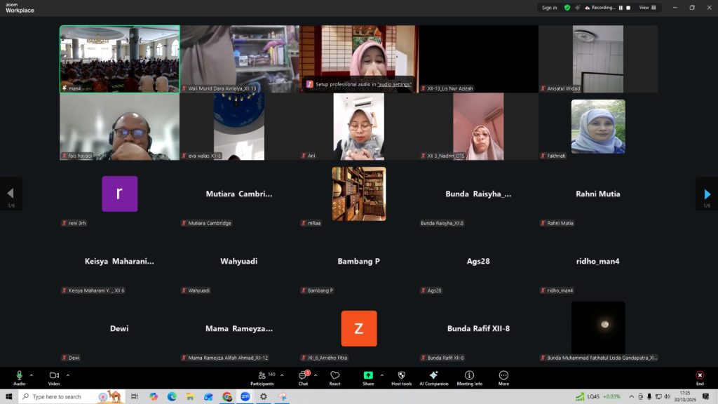 MAN 4 Jakarta Selatan (31/10/2025) – MAN 4 Jakarta Selatan dalam rangka mempersiapkan diri menghadapi Tes Kemampuan Akademik (TKA) tahun 2025, menyelenggarakan kegiatan doa bersama pada Jumat, 31 Oktober 2025. Kegiatan ini diikuti oleh seluruh murid kelas X, XI, XII, serta seluruh guru dan tenaga kependidikan (GTK) MAN 4 Jakarta Selatan. Kegiatan dilaksanakan secara hybrid, di mana murid dan GTK mengikuti secara langsung di madrasah, sementara orang tua murid dapat bergabung secara daring melalui Zoom Meeting.