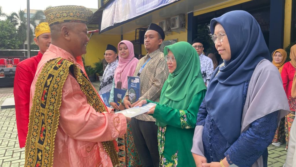Jakarta Selatan – Dalam rangka memperingati Hari Guru Nasional (HGN) 2025, MAN 4 Jakarta Selatan menyelenggarakan upacara penghargaan bagi 14 Guru dan Tenaga Kependidikan (GTK) yang dinilai memiliki dedikasi, inovasi, dan kontribusi besar terhadap kemajuan madrasah. Pemberian penghargaan dilakukan langsung oleh Kepala MAN 4 Jakarta Selatan, Wido Prayoga, M.Pd., sebagai bentuk apresiasi atas kerja keras dan pengabdian para GTK selama satu tahun terakhir.