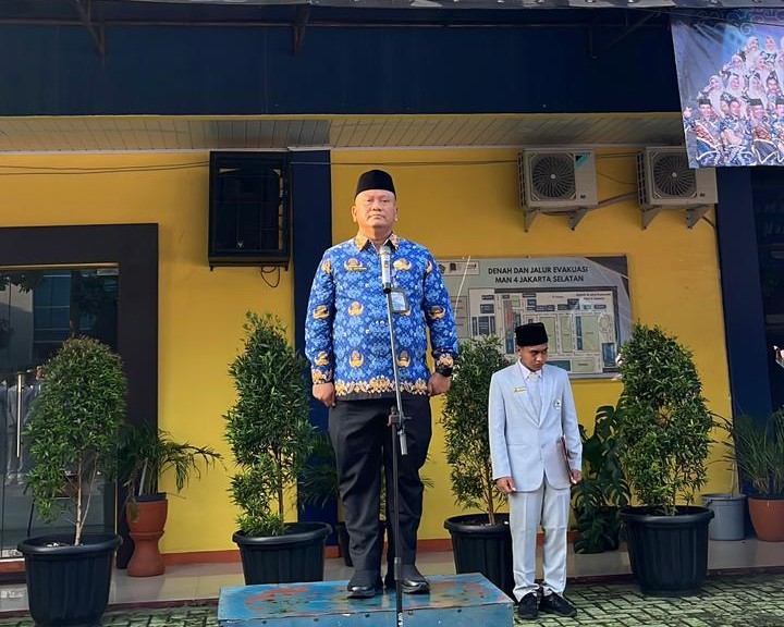 Upacara dipimpin langsung oleh Kepala MAN 4 Jakarta Selatan, Wido Prayoga, M.Pd, selaku pembina upacara. Dalam kesempatan tersebut, beliau memberikan amanat yang berisi pesan-pesan penting terkait nilai integritas, kedisiplinan, dan kejujuran yang harus ditanamkan dalam diri seluruh warga madrasah. Suasana hening menyelimuti lapangan saat amanat disampaikan, menandakan perhatian penuh dari seluruh peserta.