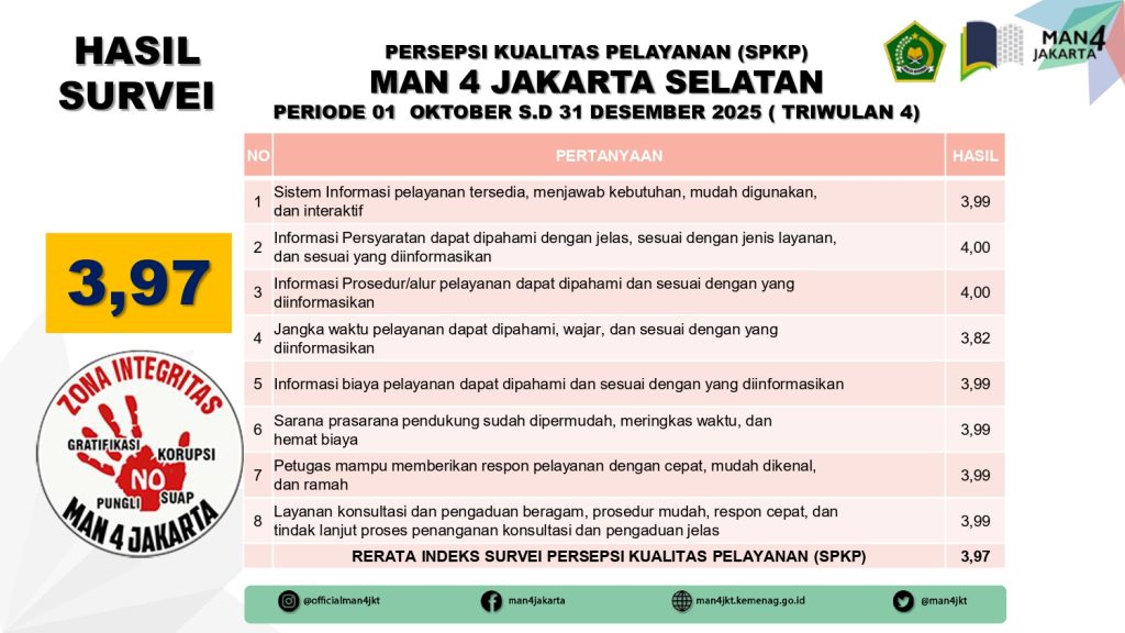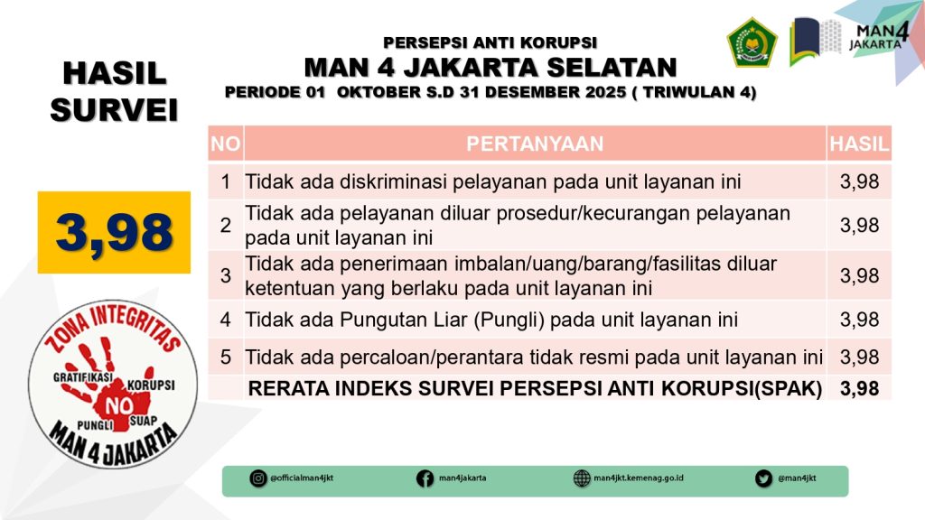Post navigation MAN 4 Jakarta Selatan menjadi tuan rumah pelaksanaan rangkaian kegiatan Hari Anti Korupsi Dunia (Harkodia) bertajuk Youth Integrity Fest “Tolak Korupsi Sejak Dini!”