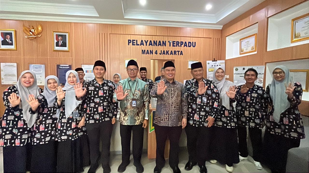 Jakarta Selatan – Inspektur Jenderal (Irjen) Kementerian Agama Republik Indonesia, Kahirunnas, melakukan kunjungan kerja ke MAN 4 Jakarta Selatan pada Rabu, 25 Februari 2026. Kunjungan tersebut didampingi oleh Kepala Kantor Wilayah Kementerian Agama RI, sebagai bentuk perhatian dan dukungan terhadap capaian prestasi madrasah. Kehadiran Irjen disambut hangat oleh Kepala Madrasah, para guru, tenaga kependidikan, serta murid-murid.
